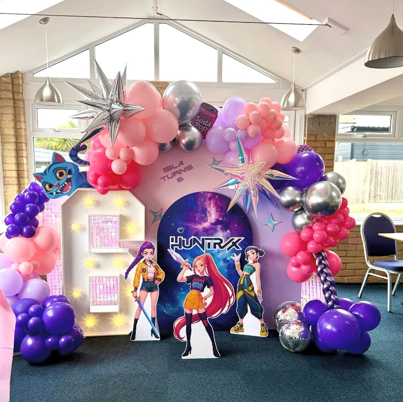 - 50cm wide Demon Cat, 30cm Soda Pop, 30cm wide Fan, 25cm Disco Ball, 25cm Star, x2 20cm Stars, x2 15cm Stars all without stands.
