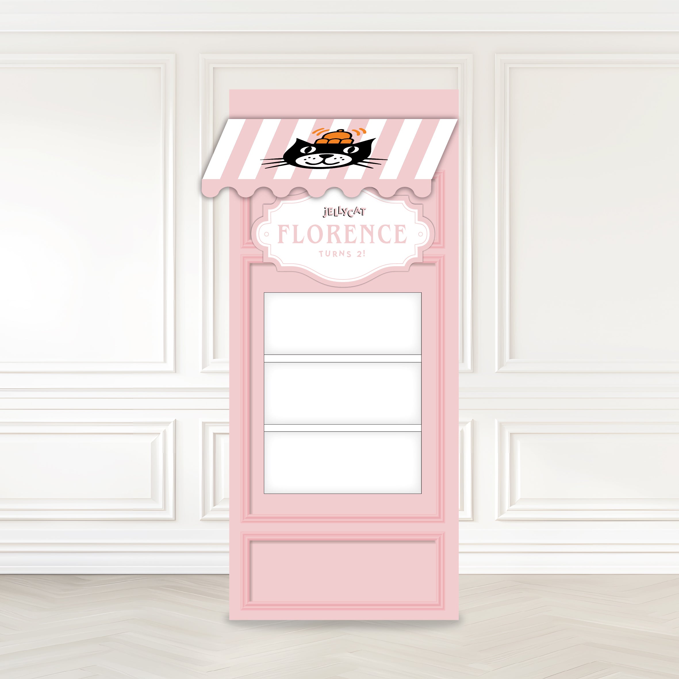 Make a bold yet functional statement with our 6ft Cardboard Shelving Unit Backdrop, designed to elevate event styling while providing practical display space. Featuring three sturdy shelves and a 3D canopy top, this backdrop adds depth, dimension, and visual interest to any setup.