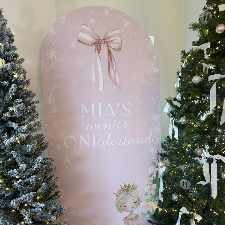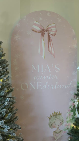 Add a sprinkle of winter magic to your memories with this beautiful pink backdrop — the perfect photo-ready centrepiece for your Winter ONEderland!