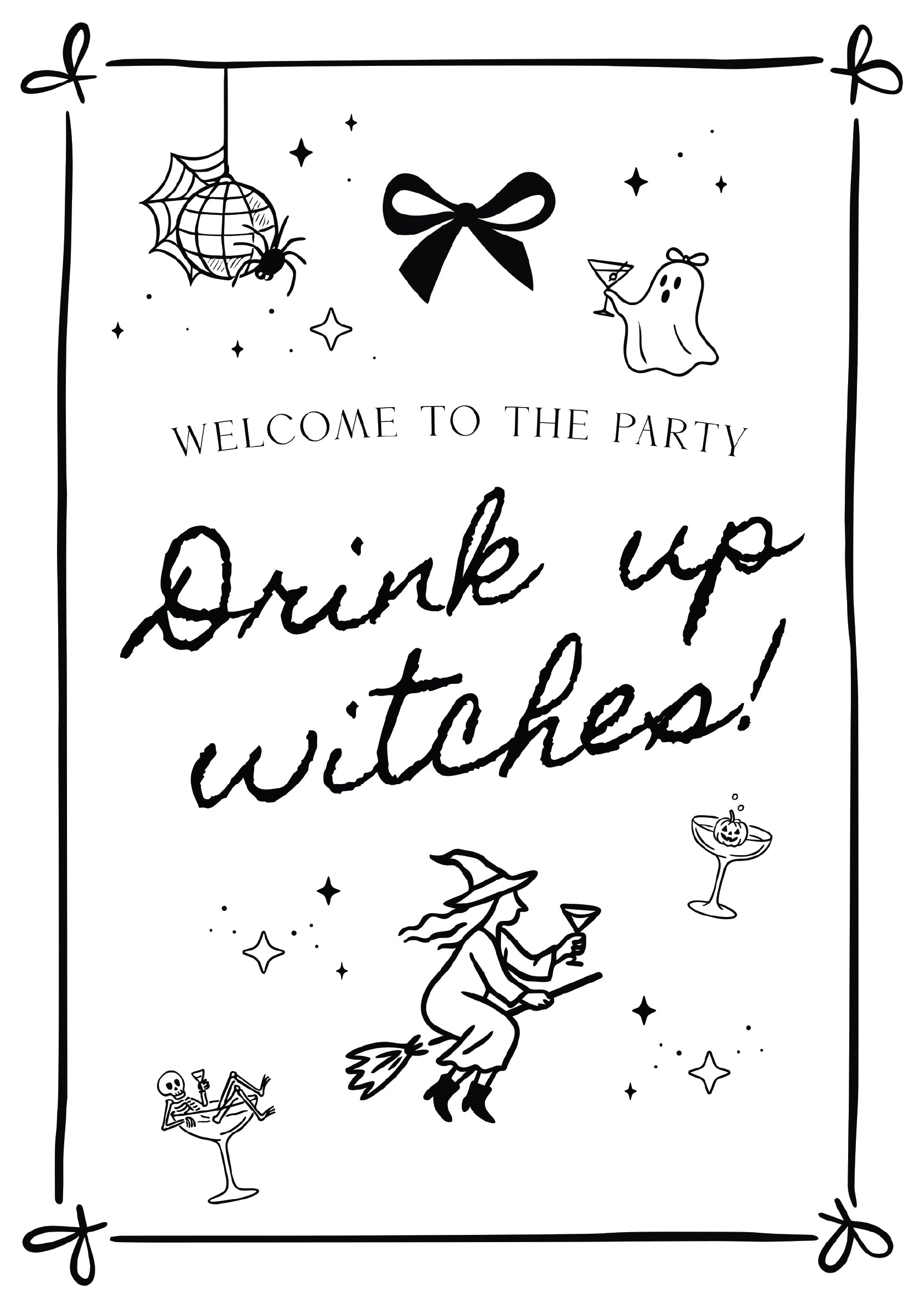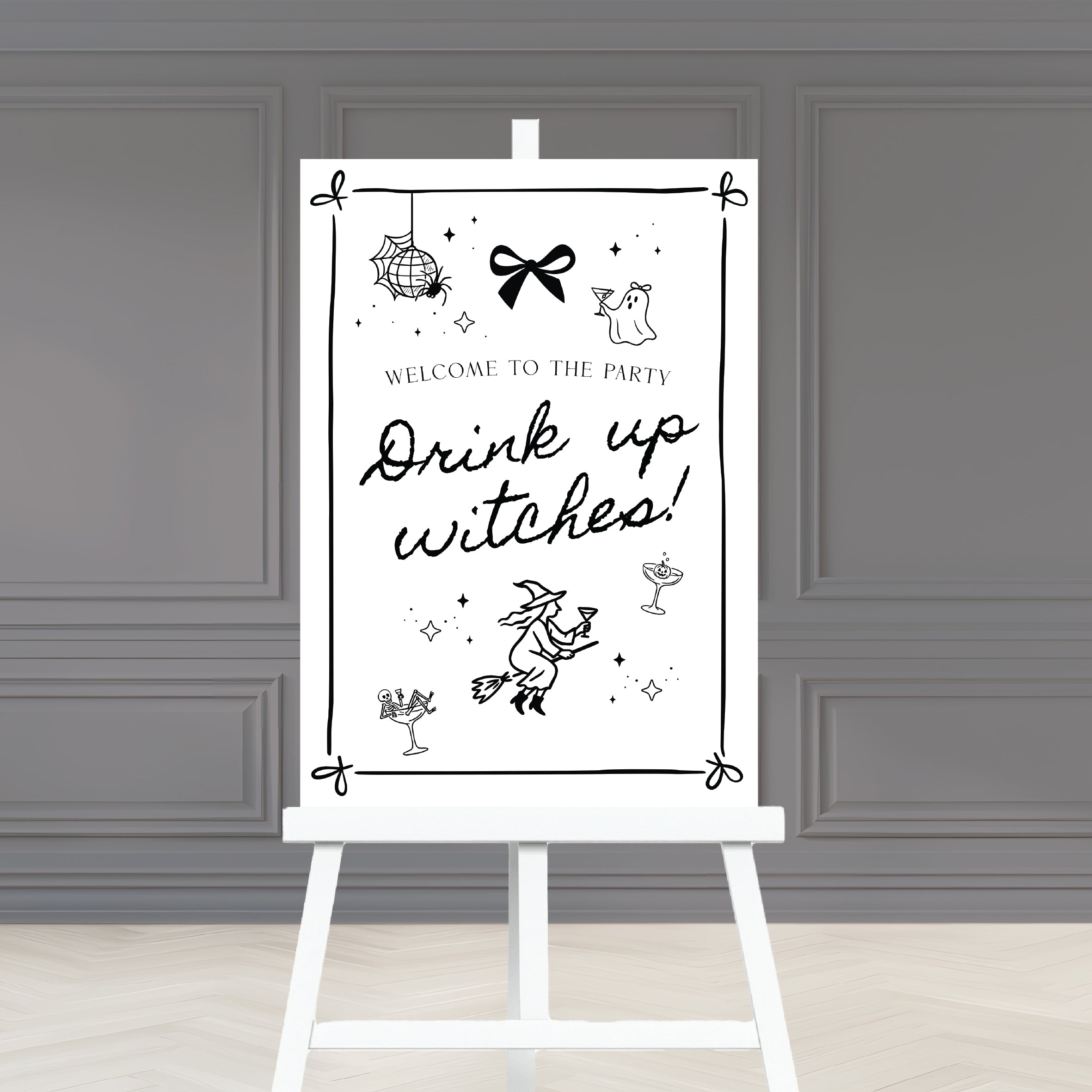 Drink up Witches Halloween Party Welcome Sign, Printed on 4mm thick white cardboard.