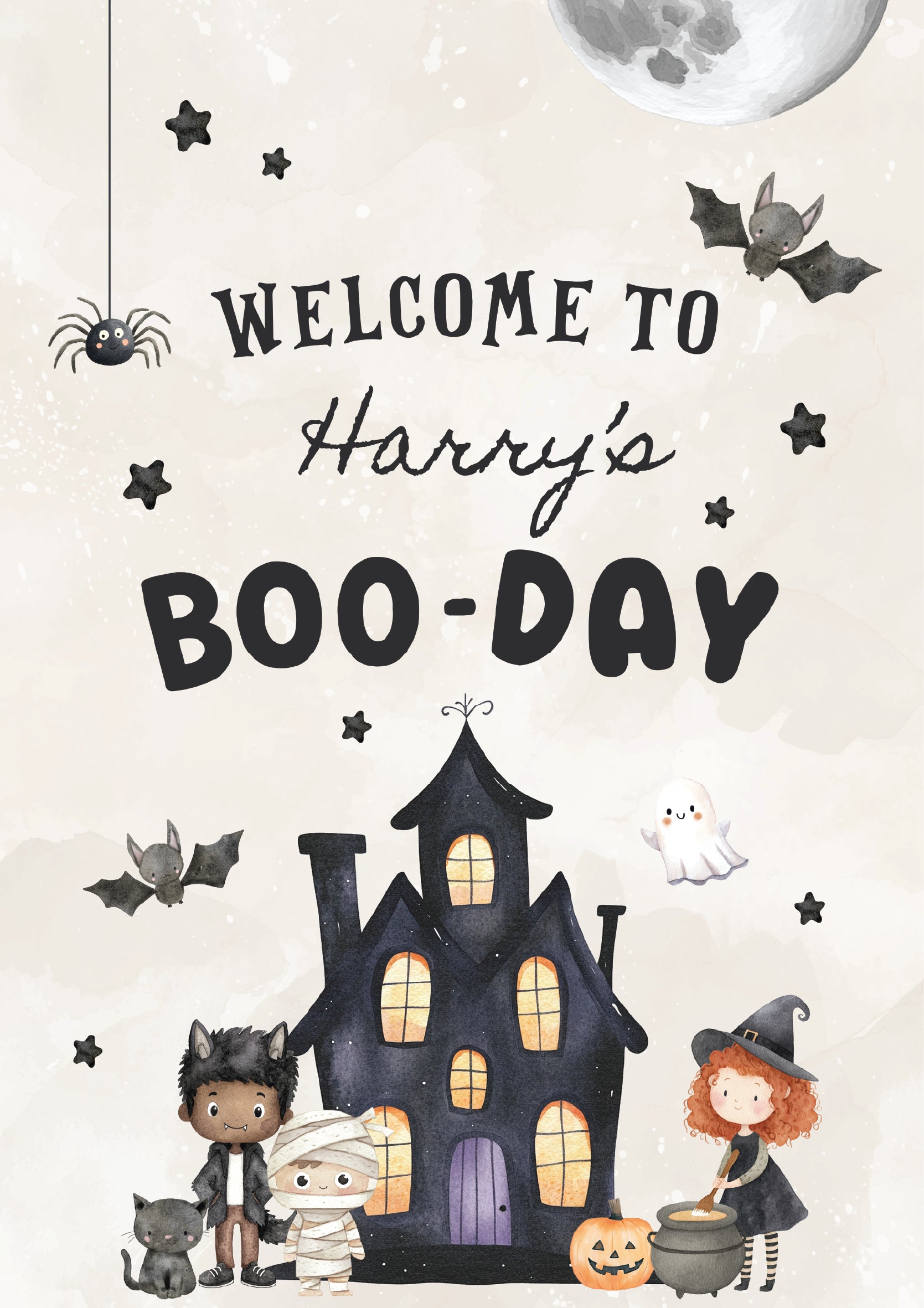 Halloween BooDay Party Welcome Sign, Printed on 4mm thick white cardboard.