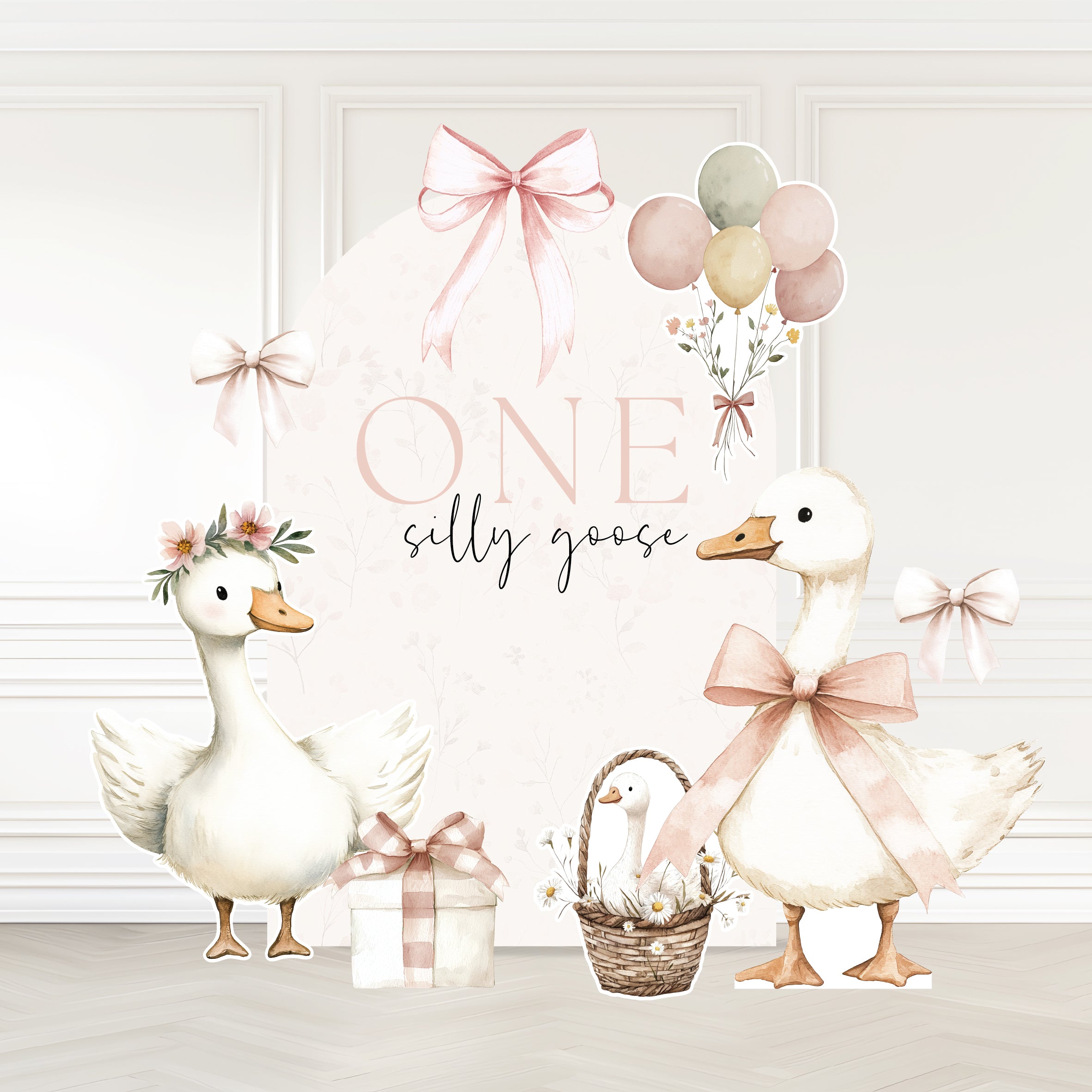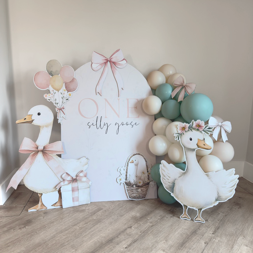 - 4ft Backdrop + 81cm Goose with Pink Bow both with stands.