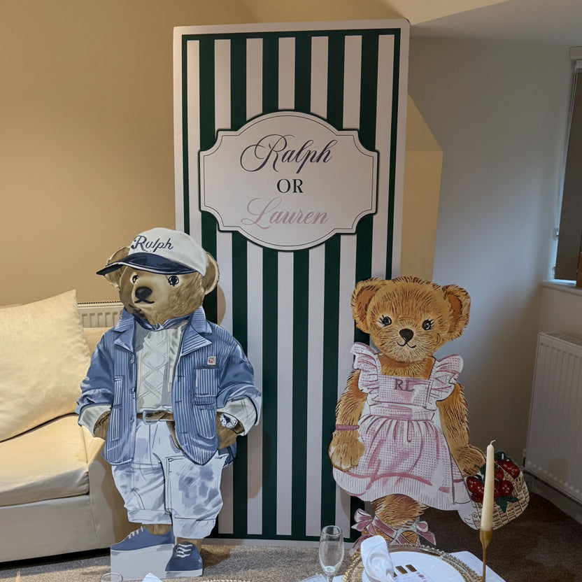 Are they a Ralph? OR a Lauren? 🩷 💙 Create a stunning scene for your gender reveal/baby shower with our Ralph Bear Backdrop.