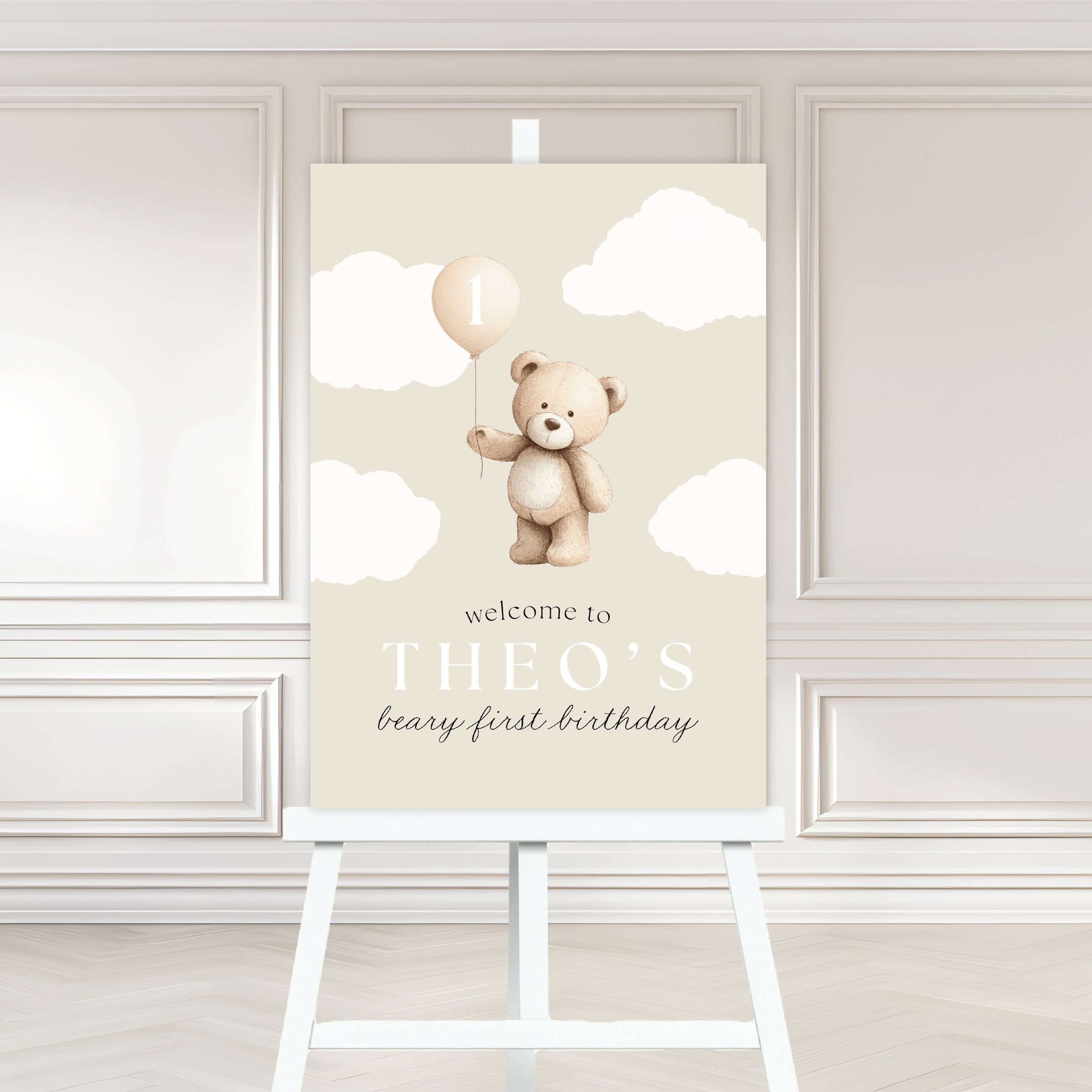 Teddy Bear Baby Shower Welcome Sign, Printed on 4mm thick white cardboard.